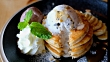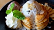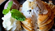 Slow-Motion-Eis schmelzen langsam auf Pfannkuchen: Pfannkuchen mit Eis und Soße. - 4K Stock-Video