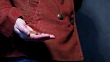 Kleine Veränderung in der menschlichen Hand, die es in der Nähe der Tasche der rostigen Cordjacke hält