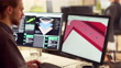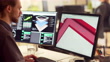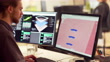 Close up 4K stock video of a bearded young man working at a computer screen. He’s working on CAD software designing a component for a solar panel.