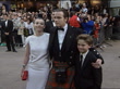 Film: 'Star Wars Episode 1 - The Phantom Menace' opens:; ENGLAND: London: Leicester Square:EXTLA MS person dressed up as character of Queen Amidala from the new Star Wars filmMS Ewan MacGregor in a kilt (Obi Wan Kenobi) with his wife Eva and young boy posing for photographsMS Samuel L Jackson (Jedi Knight) alongCMS Natalie Portman (Queen Amidala) posing for pressJohn Marriot (film critic) interview SOT- film is a bit flat