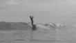 A surfer surfing waves and doing a hang five trick on his classic longboard surfboard. - Slow Motion - 4K Stock-Video