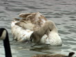 Swan, on lake, preening feathers, idyllic, relaxing, calm. South England, UK