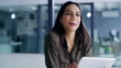4k video footage of an attractive young businesswoman sitting alone in her office and using technology