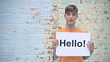 Teenage boy with greeting on signs - HD Stock-Video