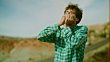 The young man playing mouth organ in the desert in Arches national park, Utah. 4K UHD video footage.