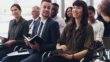 4K-Aufnahmen einer Geschäftsfrau, die während einer Konferenz ihre Hand hebt