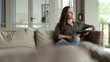 Nachdenkliche Frau mit Tablet-PC zu Hause - 4K Stock-Video