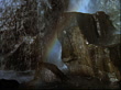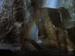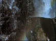 Tilt down waterfall to rainbow over rocks, Maui - Stock-Video