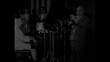 Title superimposed on former US President Harry Truman and James Petrillo, "Truman and Petrillo really beat it out" / Truman enters, shakes Petrillo's hand / cheering crowd / SOT Petrillo (holding trumpet, Truman at grand piano) "This'll show you why we don't want any more canned music in the United States"; Truman laughs / they play "Hail, Hail, the Gang's All Here" badly / Truman heartily laughing