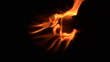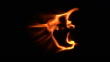 Top view of Real fire flame in super slow motion with black background and copy space