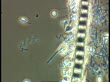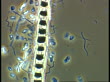 Track down filament of filamentous algae in pond sample. Phase Contrast - Stock-Video