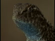 Track left and up over male side-blotched lizard with bright blue throat, Mojave desert (Core Number: NBSL780Y)
