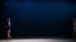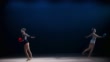 SLO MO Zwei rhythmische Turnerinnen gegenüberliegenden, die einen Split-Sprung machen, während sie ihre Bälle in die Luft werfen - 4K Stock-Video