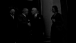 Two shots of from left to right French Prime Minister Rene Pleven, French Foreign Minister Robert Schuman, French President Vincent Auriol, French Minister of National Defense Jules Moch, Canadian Prime Minister Louis St. Laurent, and Auriol's wife Michelle stepping out on porch of Elysee Place, residence of French president, for photo opportunity / group of photographers in front of building taking pictures Auriol and St. Laurent shaking hands and talking / wider view of Auriol and St. Laurent shaking hands and talking, Schuman standing to their right, Moch behind them, St. Laurent turns to Madame Auriol and talks to her / two close shots of Pleven and St. Laurent talking / St. Laurent leaves porch between Schuman and Moch and steps back inside / Auriol shaking hands and talking with Canadian Ambassador to France Georges Vanier / Vanier on right and St. Laurent stepping down from porch, St. Laurent talks to reporter holding microphone up to him / closer view of St. Laurent talking into microphone / St. Laurent getting into car / Note: exact day not known