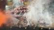 Heavy smoke from barbecuing meat on the street of Ulaanbaatar.