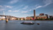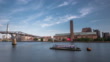 Under a rapidly moving sky tourists and commuters flow quickly over the Millennium Bridge spanning the River Thames with the Tate Modern Gallery on the South Bank of the river - 4K Stock-Video