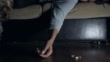 Unkenntliche Frau ist Selbstmord zu Hause, Frau Hand fällt auf den Boden