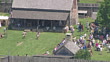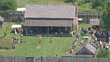 MS ZO AERIAL View over Spectators watching Shawnee men reenactment at Fort Randolph Reenactment / Point Pleasant, West Virginia, United States - HD Stock-Video
