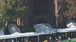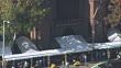 AERIAL Visitors walking out front of the Salem Witch Museum / Massachusetts, United States - HD Stock-Video