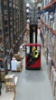 Interior of a large commercial storage warehouse. Workers wearing protective gear and helmets and rushing to sort the rows of large cardboard box cargo