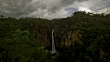 4K Time lapse water pouring over a cliff as clouds rush by above