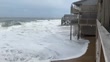 Waves crash into the steps of a home on the ocean side of Hatteras Island on August 20, 2025 in Buxton, North Carolina. Hurricane Erin is bringing storm surge to North Carolina's Outer Banks while moving through the Atlantic, prompting mandatory evacuations for Hatteras and Ocracoke islands. (Footage by Cape Hatteras Motel/Spectee via Getty Images UGC)