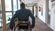 Rollstuhl-Geschäftsmann benutzt Aufzug auf dem Büro - 4K Stock-Video