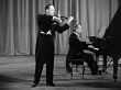 1951 Wide shot Jascha Heifetz playing violin onstage next to pianist during performance/ USA