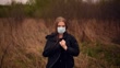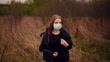 Frau in einer Maske zieht eine Jacke bei Natur Pandemie covid-19 Coronavirus - HD Stock-Video