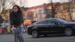 Woman riding bike in city traffic - 4K Stock-Video