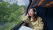 Frau, die im Zug reist und Musik in Kopfhörern hört - 4K Stock-Video