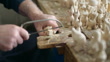 Holzschnitzer, der in seiner Werkstatt handgefertigtes Holzspielzeug herstellt. Inhaber eines kleinen Familienunternehmens. - 4K Stock-Video