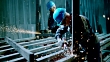SLO MO DS Workers smoothening weld on metal frame - 4K Stock-Video