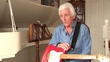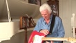 60 years since the Shadows picked up Fender Stratocaster guitars; ENGLAND:INTBruce Welch (The Shadows guitarist) interview SOTReporter and Welch looking at collection of gold discsWelch picking up gold disc for 'Apache'Framed gold disc for 'Apache'