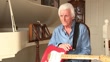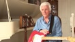 60 years since the Shadows picked up Fender Stratocaster guitars; ENGLAND:INTReporter sat with Bruce Welch (The Shadows guitarist)Reporter asking question SOTBruce Welch (The Shadows guitarist) interview SOTWelch putting CD of music by The Shadows into CD playerVarious of Welch showing off on stage moves with Fender Stratocaster as music plays SOT.