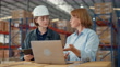 Young caucasian woman worker and mature female manager checks stock inventory with tablet and laptop and discuss talk together in retail warehouse. Logistic industry business concept.